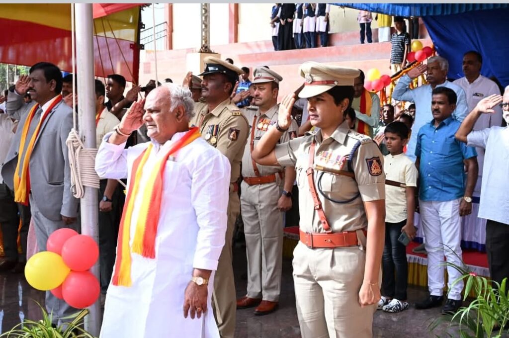 ಹಾವೇರಿ : ಹಾವೇರಿಯಲ್ಲಿ ಜಿಲ್ಲಾಡಳಿತ ವತಿಯಿಂದ ನಡೆದ 70ನೇ ಕನ್ನಡ ರಾಜ್ಯೋತ್ಸವದಲ್ಲಿ ಜಿಲ್ಲಾ ಉಸ್ತುವಾರಿ ಸಚಿವರಾದ ಶಿವಾನಂದ ಪಾಟೀಲ್ ಧ್ವಜಾರೋಹಣ ಮಾಡುವುದರ ಮೂಲಕ ಕನ್ನಡ ರಾಜ್ಯೋತ್ಸವಕ್ಕೆ ಚಾಲನೆ